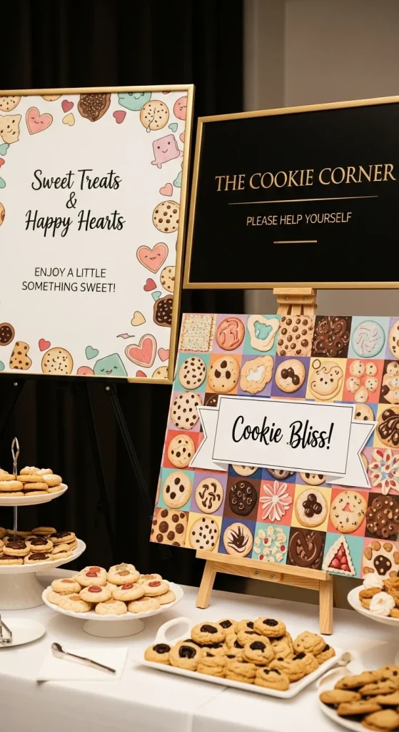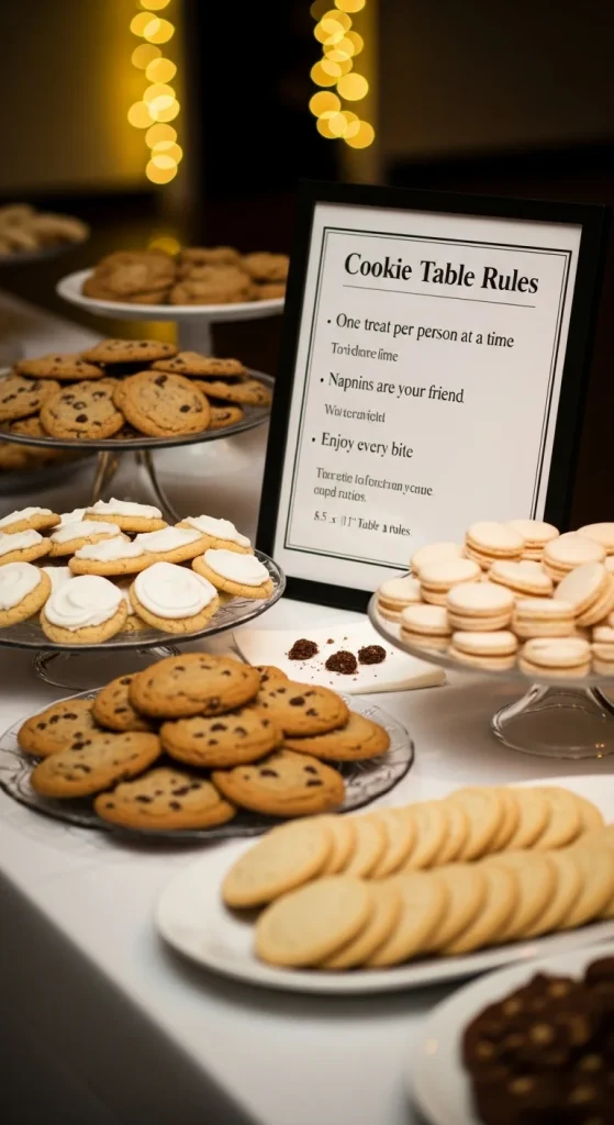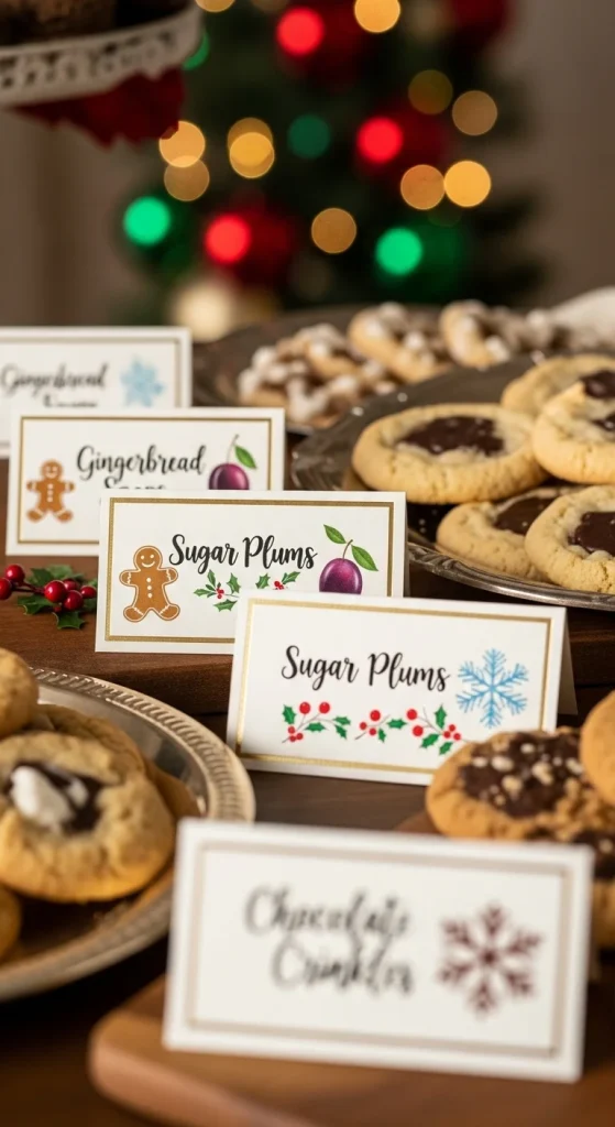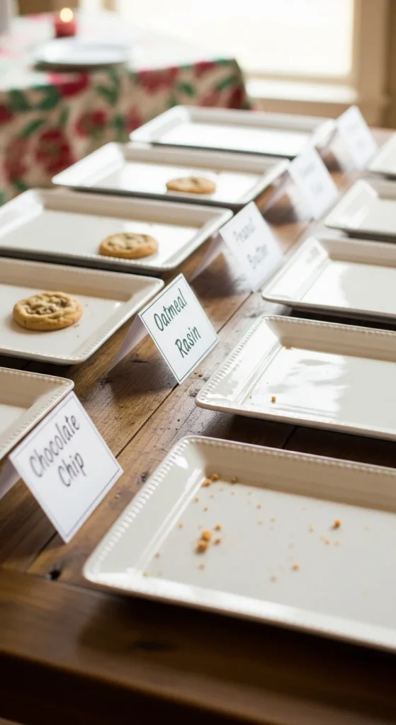 Place cards help guests know where to put their trays. Print labels with guest names or cookie names and place them at each spot. Guests can set up their cookies quickly without searching for space. Use colour-coding for different cookie styles if you want added clarity. This creates a clean table layout.