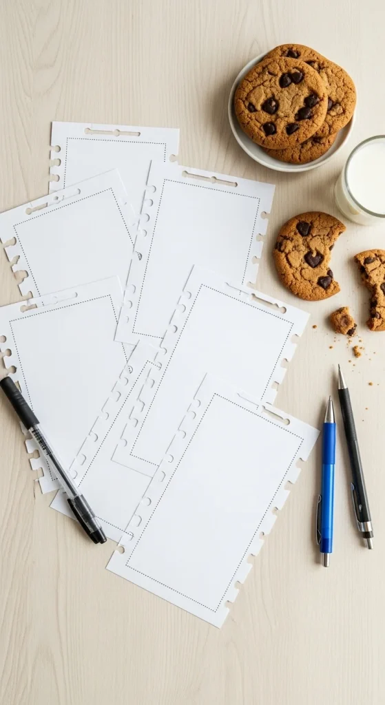 Ask each guest to fill one out and display it next to their cookies. Use basic cardstock for durability, or print multiple on a page for low-cost sheets. Keep extra cards at the table for late guests. This small detail helps everyone leave with ideas they can use later.