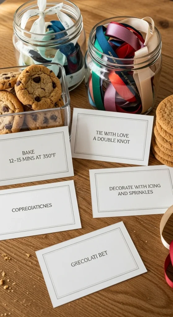 Instruction cards help guests package their cookies neatly. Print tips like “Use tissue paper to prevent breakage” or “Tie bags loosely to keep cookies soft.” Place them near the packaging station. This saves you from repeating the same instructions and gives guests guidance. Keep the cards short so they are easy to skim.