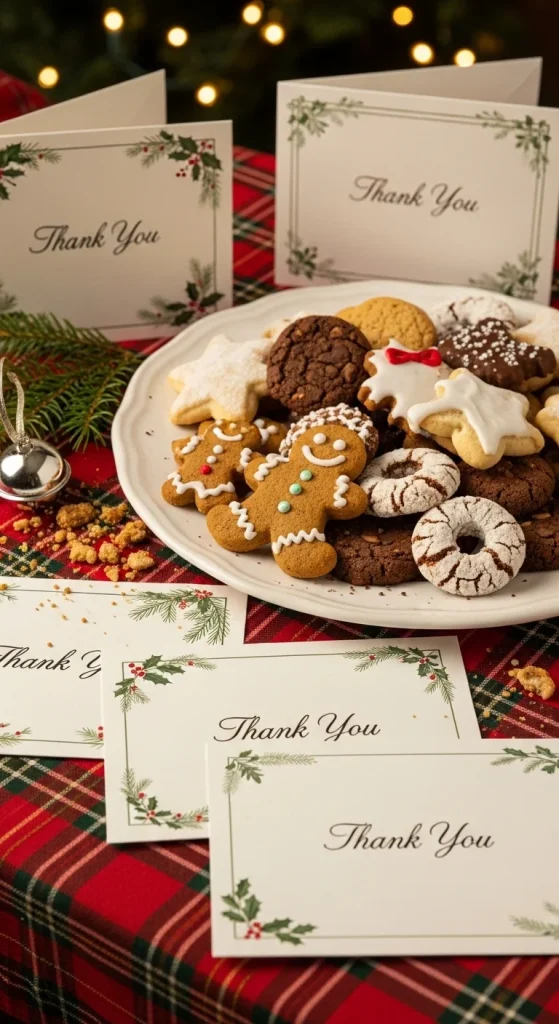 Send your guests home with thank-you cards. Print small cards with a short holiday message. Place them inside each cookie package or hand them out at the end. Use one colour to keep printing inexpensive. Add a handwritten note for extra warmth. This small gesture leaves a lasting impression.