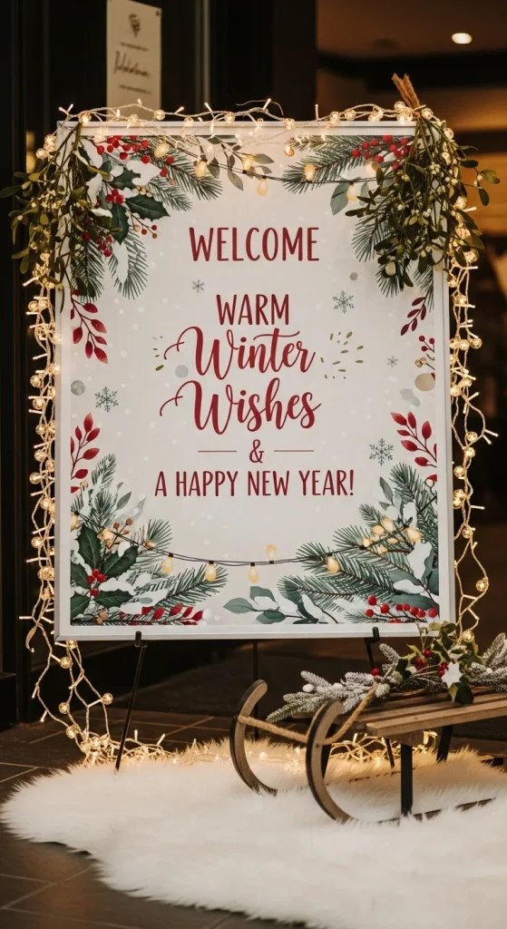 A welcome poster sets the tone as guests arrive. Print a simple design with holiday colours and a cheerful greeting. Hang it near the door or cookie table. Use standard printer paper and place it in a reusable frame. This creates a warm first impression and guides guests into the event flow.
