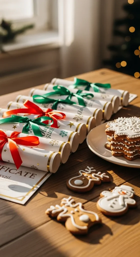 Fill them out as winners are chosen. Use inexpensive printer paper or cardstock depending on your budget. Keep designs simple with basic holiday colours. Handing out certificates adds a cheerful finish to your event.