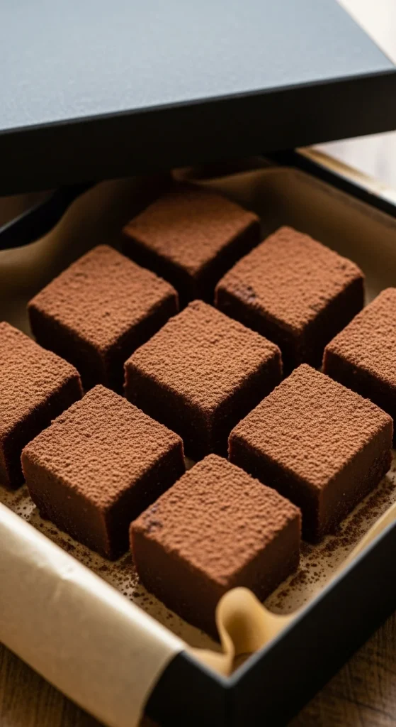 Melt chocolate, butter, and condensed milk. Stir, pour into a pan, and chill until set. Slice into squares and wrap individually. It’s rich, classic, and makes everyone smile.