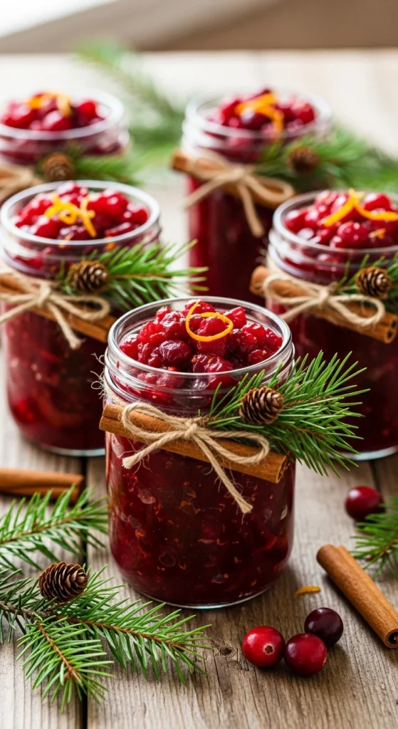 Simmer cranberries with orange juice and sugar until thick. Pour into jars and cool. Add a note suggesting: “Delicious with turkey or cheese.” Classic, simple, and full of flavour.