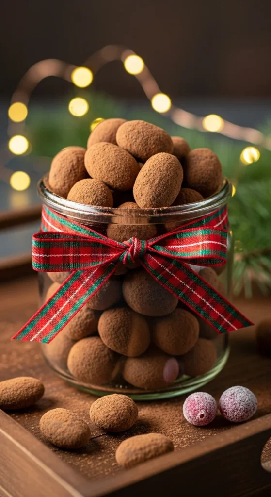 Melt chocolate, toss in almonds, and let cool. Dust with cocoa or sea salt. Package in small tins or jars. Elegant and addictive. A healthy gift that still feels indulgent.