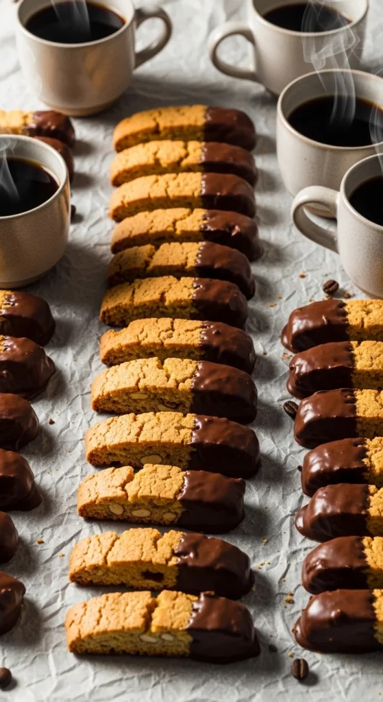 Twice-baked cookies that stay crisp for weeks. Add almonds, cranberries, or chocolate chips to the dough. Dip ends in chocolate for a fancy finish. Ideal for gifting with coffee or tea.
