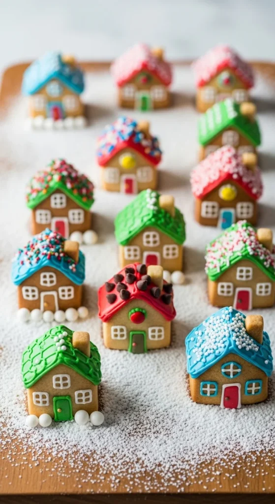 Skip the large messy houses — make mini ones instead. Use gingerbread pieces or cookie cutters to build small houses. Decorate with icing and candy details. Perfect for kids who want their own tiny creations.