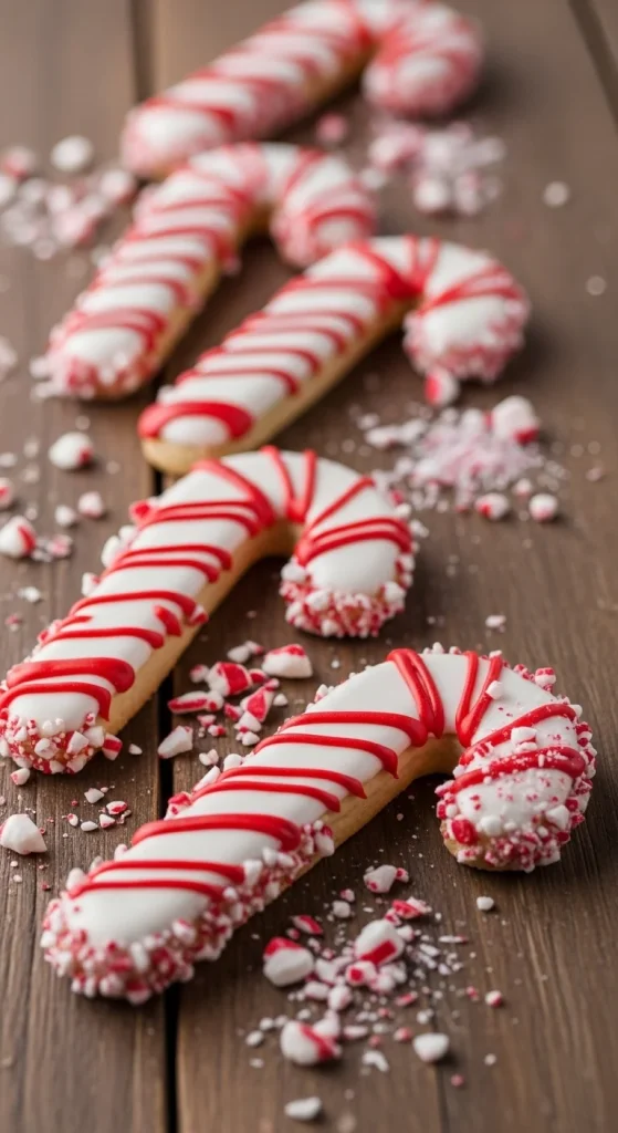Keep it simple but festive. Use red and white icing to draw candy cane stripes. Sprinkle crushed peppermint on top while the icing is wet. They’re crisp, minty, and cheerful — plus, kids love the hands-on process.