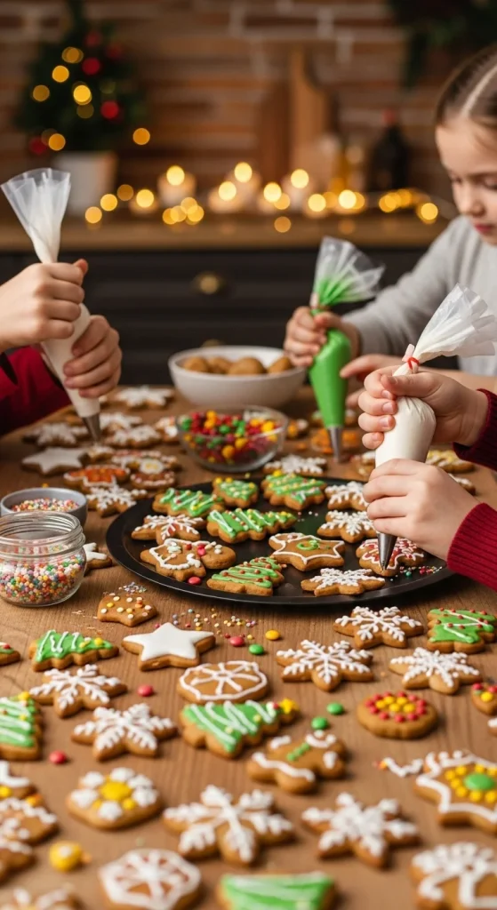 Turn cookie decorating into a full event. Set up a station with bowls of icing, candies, and piping bags. Cover the table with parchment for easy cleanup. Let everyone grab cookies and get creative. Affordable, interactive, and full of laughs — the perfect family tradition.