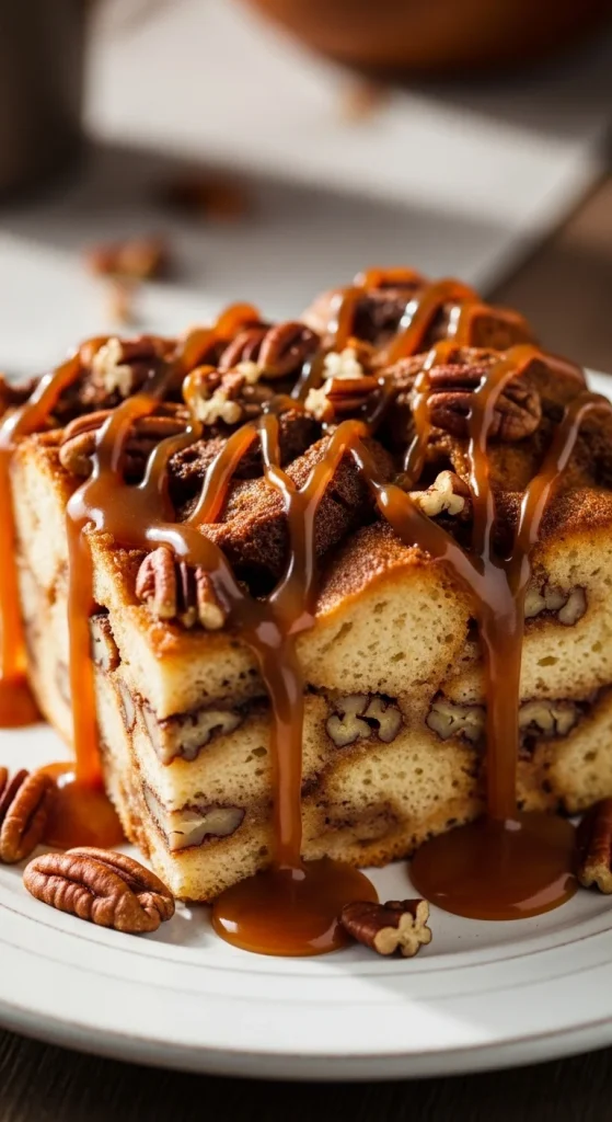 Pecan praline bread pudding is a sweet, nutty dessert that’s perfect for the holidays. The rich custard pairs beautifully with the toasted pecans and caramelized praline sauce. This indulgent treat is great for a holiday brunch or dessert, especially for pecan lovers.