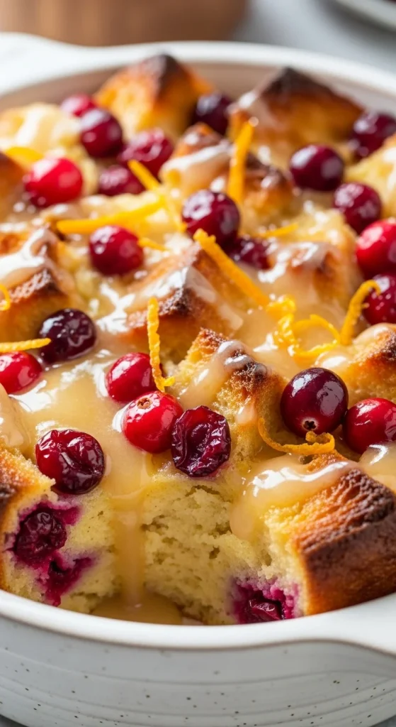 Cranberry orange bread pudding is a bright, festive dessert that combines the tartness of cranberries with the zest of orange. The combination of flavors is perfect for the holiday season, and the citrus glaze adds a refreshing finish. This dessert is sure to impress at any holiday gathering.