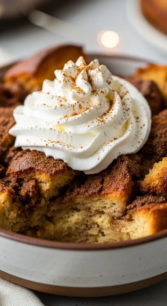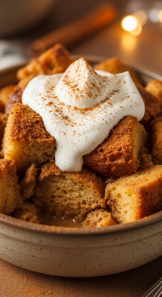 Cinnamon roll bread pudding combines the comforting flavors of cinnamon rolls with the richness of bread pudding. The cinnamon sugar adds sweetness, and the soft, gooey texture makes this a decadent treat. It’s perfect for holiday brunches or as a dessert after a hearty meal.