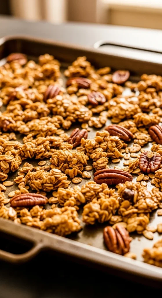 Crunchy, sweet, and homemade — this granola makes mornings special. Combine oats, pecans, and maple syrup, then bake until golden. Serve with yogurt or milk. Store in jars for days of easy breakfasts.