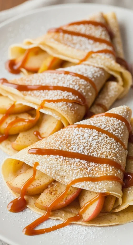 Light yet cozy, these crepes taste like dessert for breakfast. Fill with sautéed apples and cinnamon, then drizzle caramel on top. Kids love helping with the fillings. Make extra — they disappear fast!