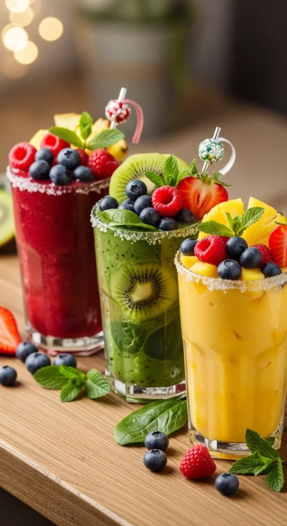 Blend up red and green smoothies — one with strawberries, one with spinach and banana — for a playful holiday breakfast. They’re healthy, quick, and perfect when you need something light after big dinners.