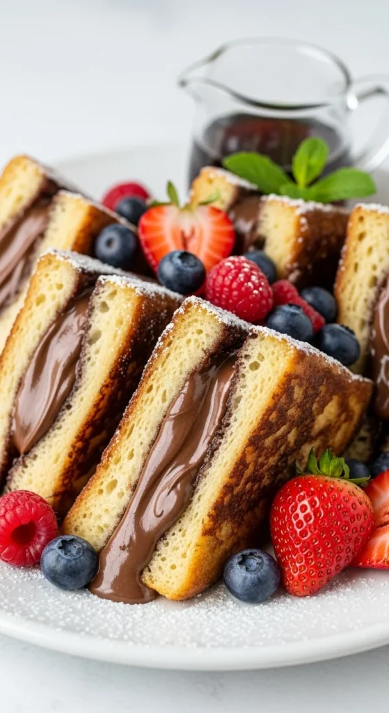 This dessert-like breakfast is pure joy. Spread chocolate hazelnut between bread slices, dip in egg mixture, and cook until golden. Serve with berries and sugar. It’s indulgent but perfect for special mornings.