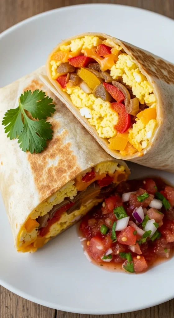 A hearty breakfast that’s quick to assemble. Fill tortillas with scrambled eggs, sautéed veggies, and cheese. Roll them up and serve with salsa or avocado. They freeze beautifully, making mornings easier — just heat and enjoy.