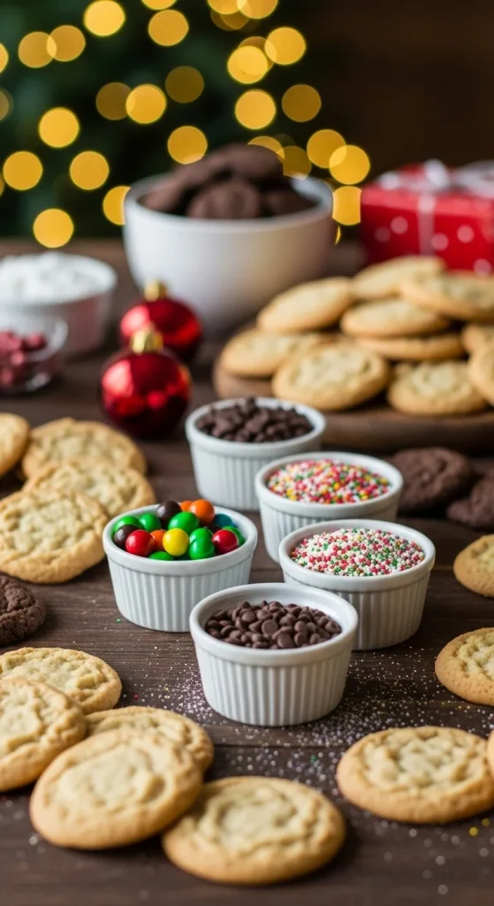 Mix cookies and candy for extra variety. Add sugar cookies, ginger snaps, candy-coated chocolates, and chocolate chips. Arrange cookies on trays and candy in jars. For a low-cost tip, bake your own cookies and pair them with bulk candies. Guests enjoy combining both on their plates.