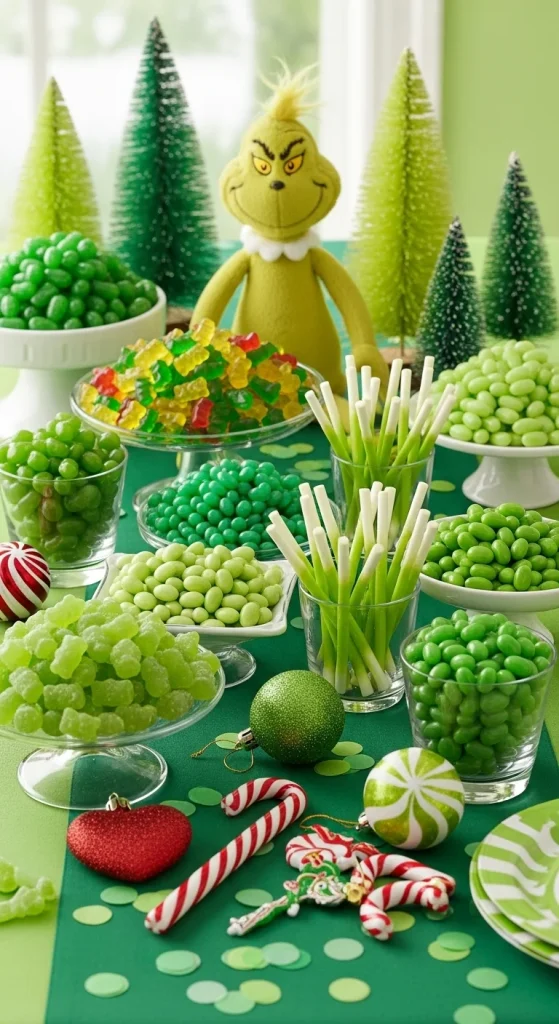 15. All-Green Grinch-Themed Candy Table