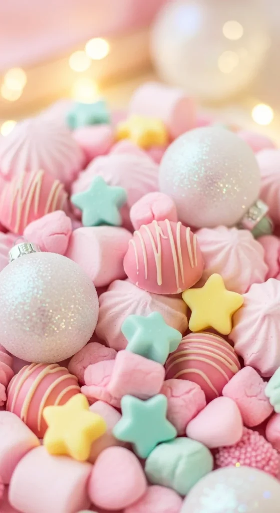 A pink-themed candy bar feels cheerful and sweet. Use strawberry chocolates, pink marshmallows, pastel gummies, and pink rock candy. Decorate with pink ribbons or ornaments. A simple DIY idea is to wrap empty boxes in pink paper to use as risers. This look is perfect for girl-themed holiday gatherings or baby showers held in December.