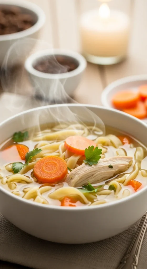 Chicken noodle soup comforts everyone. Use leftover chicken or inexpensive thighs. Add carrots, celery, broth, and noodles. Let it simmer until the flavours come together. Kids enjoy this, and it’s gentle when you want something soothing. Make extra and freeze portions for quick meals.