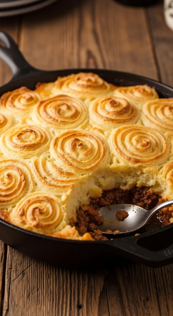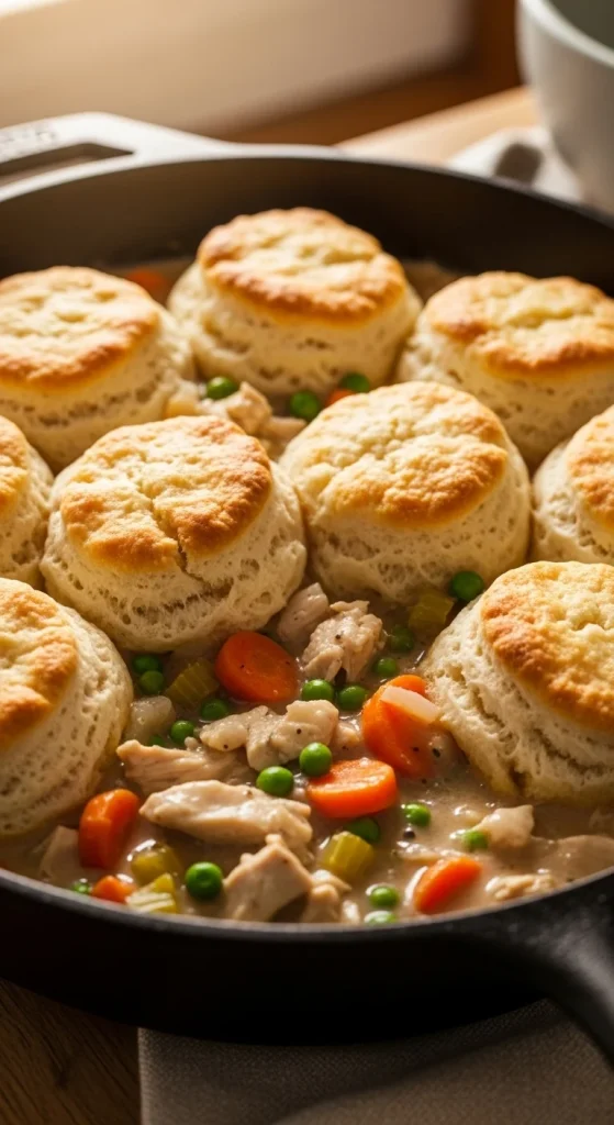 Chicken pot pie tastes comforting, but a skillet version saves time. Cook chicken with peas, carrots, and broth. Thicken with a little flour. Top with biscuit dough instead of pie crust and bake until golden. Use frozen mixed vegetables to save money and prep time. This dish works well for weeknights and still feels like a warm holiday classic.