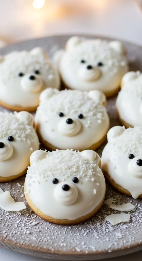 Adorable and easy. Add coconut flakes for fur, candy eyes, and small pink hearts for noses. Package with blue sprinkles to complete the arctic theme. Great for animal-loving families.
