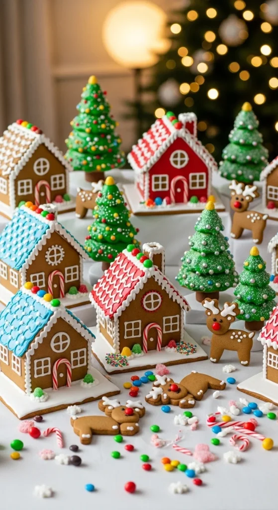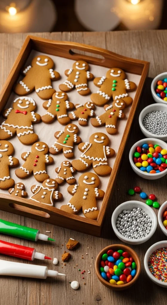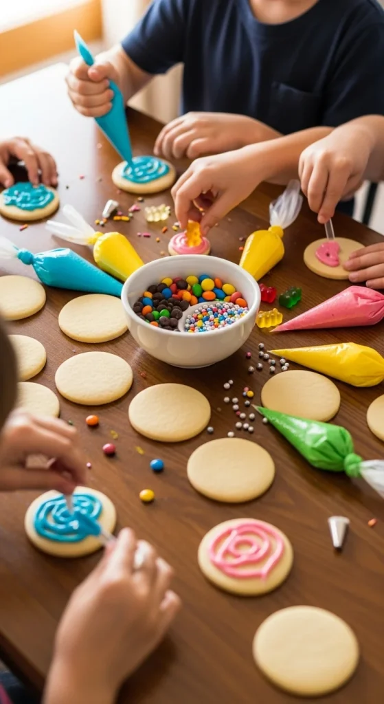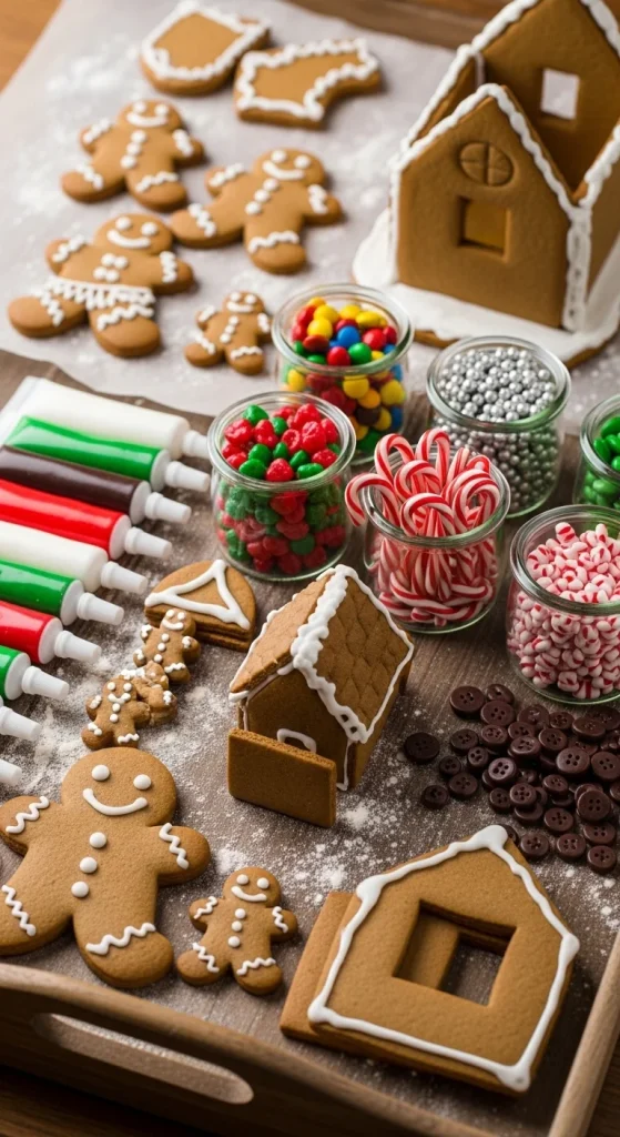 Think of it as gingerbread house fun — but simpler. Provide house-shaped cookies, icing for “construction,” and decorations like sprinkles, candy windows, and powdered sugar “snow.” Perfect for big family gatherings.