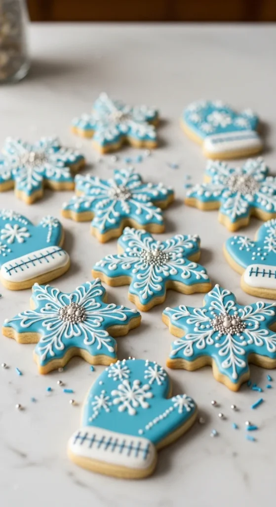 Turn your table into a snowy scene. Provide snowflake, mitten, and snowman cookies with blue and white icing. Add edible glitter and silver sprinkles for shimmer. Chill the icing before use for easier decorating.