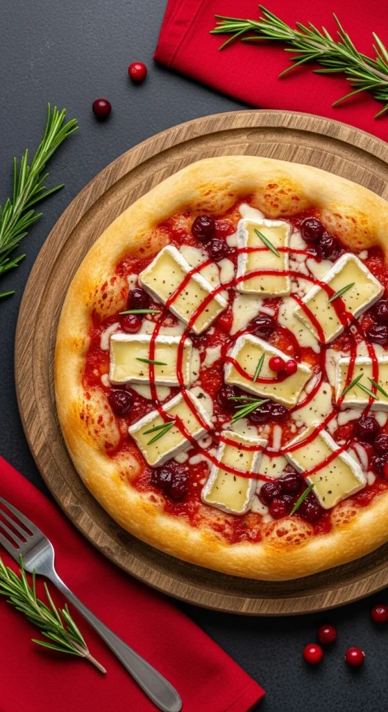 This pizza tastes like Christmas in every bite. Spread cranberry sauce as your base, top with brie slices, and bake until bubbly. Add fresh rosemary after baking. The mix of sweet and savoury is perfect for holiday get-togethers. Use store-bought dough to save time, or shape it like a wreath for presentation. Drizzle with honey before serving for an extra touch.