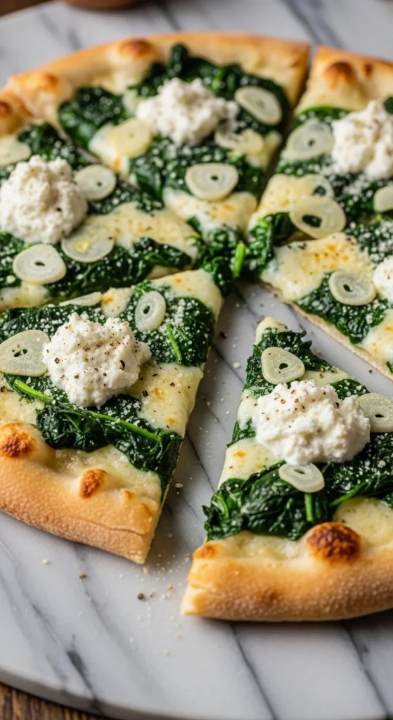 For a lighter touch, make a white sauce with garlic and cream cheese. Add spinach, mozzarella, and ricotta. Bake until golden and bubbly. This pizza feels fancy without effort. Great for vegetarian guests and pairs well with sparkling cider or wine.