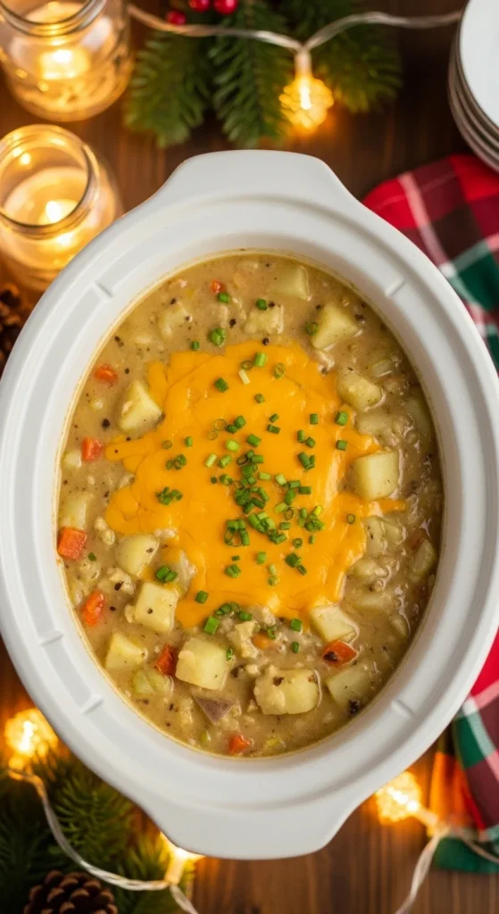This soup feels rich without extra effort. Use potatoes, onions, broth, and cream cheese. Let the slow cooker soften everything until it becomes thick. Add cheddar on top before serving. To save money, buy a large bag of potatoes; they last long and work across many dishes. If you want more texture, mix in frozen corn during the last hour. Serve with toasted bread. Leftovers hold well and reheat quickly.