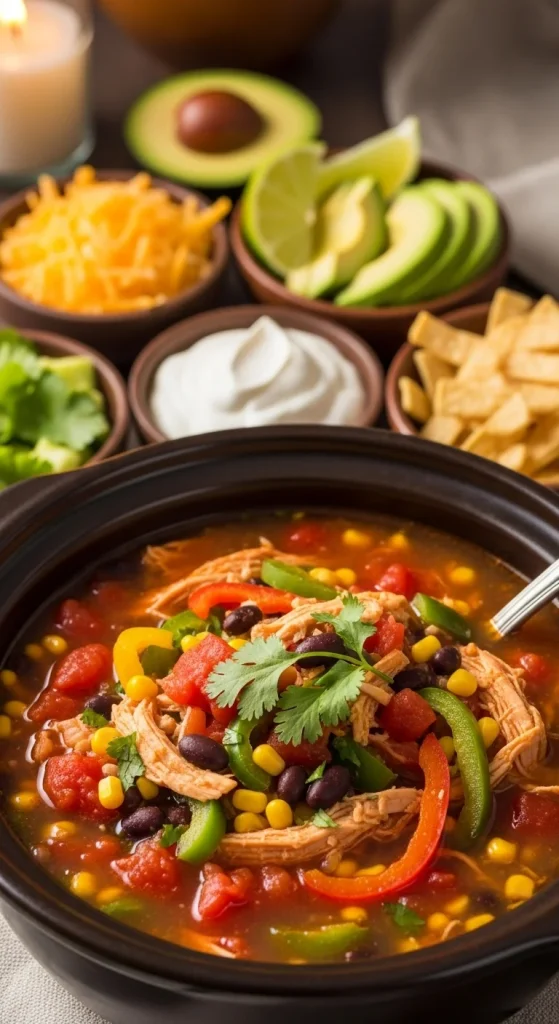 This soup has bright flavors without extra work. Use chicken breasts, peppers, onions, and canned tomatoes. Add taco seasoning for quick seasoning. Shred the chicken at the end. Add corn or black beans if you want more volume. Serve with sour cream or cheese. It works for casual holiday gatherings.