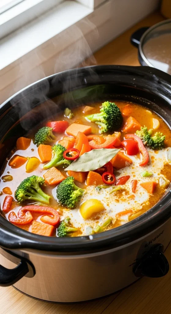 This curry soup feels warm and simple. Use potatoes, carrots, cauliflower, and coconut milk. Add curry powder for quick flavor. Frozen vegetables help cut cost and prep time. Let everything soften for several hours. Serve with rice if you want it to be more filling. It’s vegan-friendly and easy to adjust.