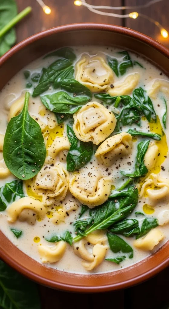 Tortellini makes this soup feel special. Use store-brand cheese tortellini. Add broth, tomatoes, and spinach. Pour in a little cream near the end. Tortellini cooks fast, so add it during the last 30 minutes. Frozen spinach works fine and costs less. Serve with parmesan on top. It’s a quick comfort dish.