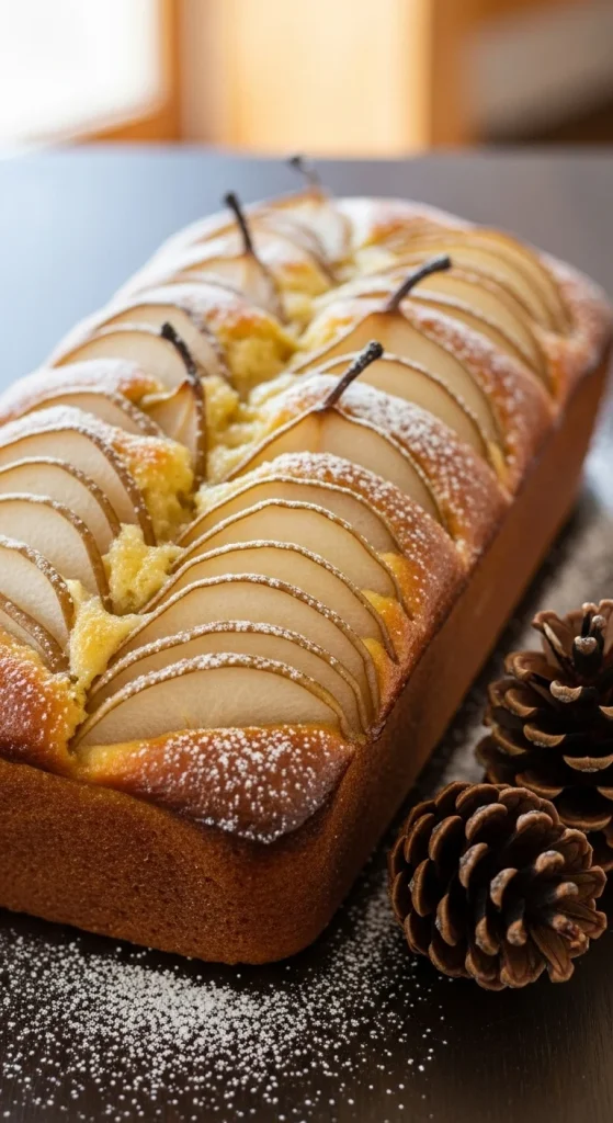 Soft, fragrant, and full of holiday spice. Mix pear purée with cinnamon, nutmeg, and almond milk. Bake in a loaf pan until golden. Serve with powdered sugar or glaze. Great for brunch or dessert.