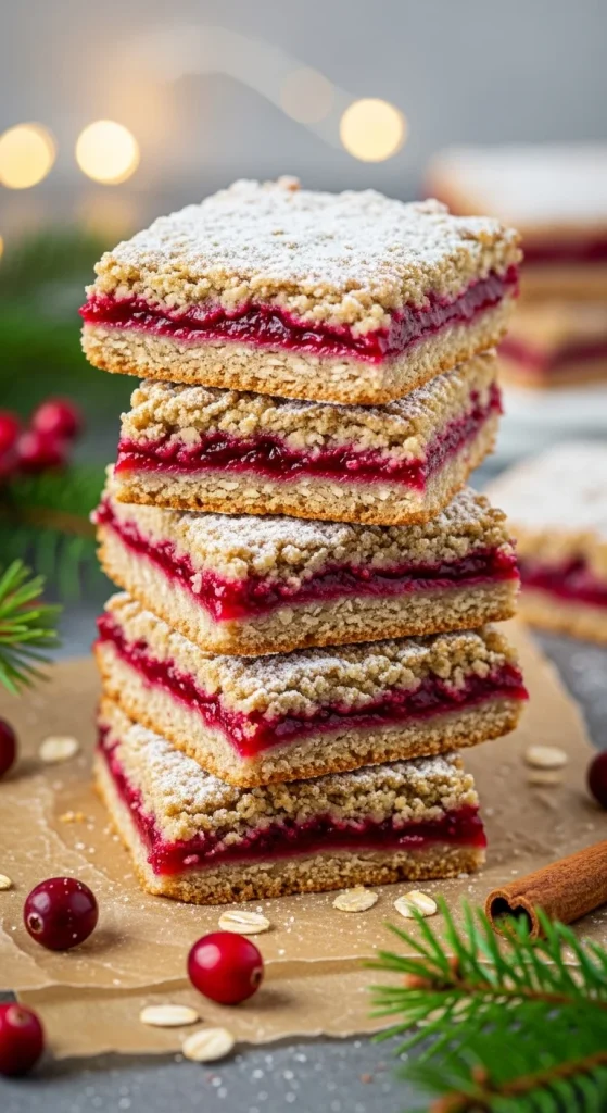 These bars mix tart cranberries and sweet oats. Combine rolled oats, flour, and coconut oil for the crust. Layer with homemade cranberry jam and crumble topping. Bake until golden. Simple to make and great for snacking or gifting.